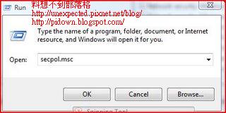 1. 在"開始"的"執行(Run)",输入"secpol.msc"。